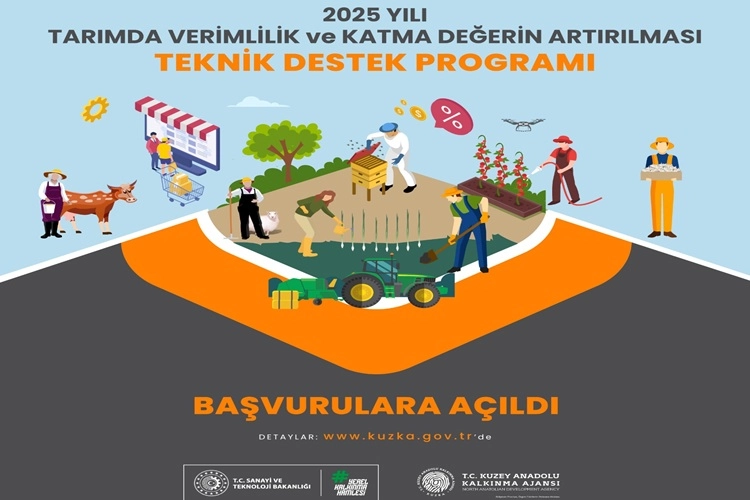 TR82 Bölgesi'nde tarımsal üretimde altyapıyı güçlendirmek, üretici örgütlerini pazarlama ve tanıtım alanlarında desteklemek ve sürdürülebilir tarım ile sanayi yönetimini teşvik etmek amacıyla Kuzey Anadolu Kalkınma Ajansı (KUZKA) tarafından hazırlanan 2025 Yılı Tarımda Verimlilik ve Katma Değerin Artırılması Teknik Destek Programı, 1 Mart 2025 itibarıyla başvurulara açıldı. KUZKA tarafından Tarımda Verimlilik ve Katma Değerin Artırılması Sonuç Odaklı Programı kapsamında hazırlanan toplam 3 Milyon TL bütçeli 2025 Yılı Tarımda Verimlilik ve Katma Değerin Artırılması Teknik Destek Programı (TVKD_TD) için proje başvuruları alınmaya başlandı.