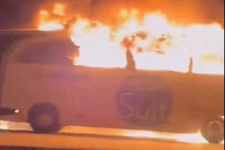 Kısa sürede büyüyen alevler otobüsü tamamen sardı ve araç alev topuna döndü. İhbar üzerine olay yerine itfaiye, jandarma ve polis ekipleri sevk edildi. İtfaiye ekiplerinin müdahalesiyle yangın kontrol altına alınarak söndürüldü ancak otobüs tamamen kullanılamaz hale geldi.