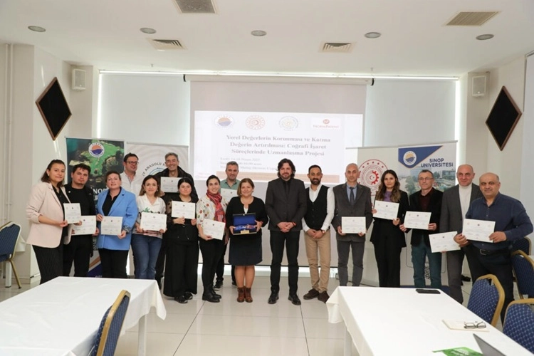Sinop Üniversitesi tarafından hazırlanan "Yerel Değerlerin Korunması ve Katma Değerin Artırılması: Coğrafi İşaret Süreçlerinde Uzmanlaşma" projesine, KUZKA 2024 yılı Tarımda Verimlilik ve Katma Değerin Artırılması Teknik Destek Programı kapsamında sağlanan destekle, üniversite ve kamu kurum ve kuruluşlarında görevli personele coğrafi işaret süreçlerinde uzmanlaşma eğitimi verildi. Ahmet Muhip Dıranas Uygulama Oteli’nde 14-18 Nisan 2025 tarihleri arasında gerçekleştirilen eğitimlerde, katılımcılara coğrafi işaret süreçleriyle ilgili teorik ve uygulamalı bilgilerin yanı sıra Sinop’un coğrafi işaret potansiyeli taşıyan tarım, gıda, tekstil ve benzeri ürünlerinin tescil, belgelendirme ve sertifikasyon süreçlerinin yürütülmesine ilişkin bilgiler sunuldu.