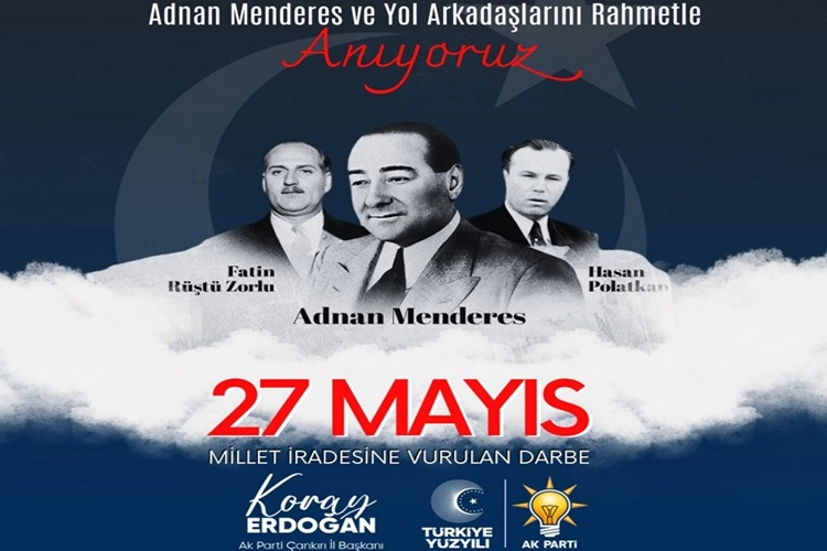Dönemin tek partili CHP yönetimiyle girdikleri seçim yarışında rekor oyla iktidara gelen Adnan Menderes ve yol arkadaşları, kısa süre içinde gerçekleştirdikleri projelerle Türkiye’ye çağ atlatmışlardır. Milletimizin milli ve manevi değerlerini Anadolu’dan silmeye çalışan CHP iktidarının anti-demokratik uygulamalarını izale etmiş, tek parti rejiminin en büyük ayıplarından “Türkçe Ezan” uygulamasını kaldırarak Anadolu’nun Ezan-ı Muhammedi’ye olan özlemini gidermişlerdir. Devlet ve vatandaşın kuvvetli bağından rahatsız olanlar çeşitli yalan ve iftiralarla 1960 yılında, askerin namlusunun Çankaya Köşkü’ne çevrilmesini sağlamışlardır. Doğrudan millete savaş açan cuntacı zihniyet, demokratik yönetime anti-demokratik yöntemlerle el koyarak seçilmiş yöneticileri tutuklamış, tiyatrovari “Yassıada Yargılamaları” ile masum insanları hukuk dışı şekilde idam etmiştir. İdam edilenler Milletin Vekilleri değil bilakis demokrasi ve milli iradeye olan inançlarıyla Türk Milleti olmuştur. Üzerinden yarım asırdan fazla geçmesine rağmen benzer bir senaryo da 15 Temmuz’da sahnelenmeye çalışılmıştır. Ancak Milletimiz vakur duruşuyla, millet iradesi üzerinde tahakküm kurmak isteyenlerin oyunlarını 15 Temmuz’da son kez bozmuş; Cumhurbaşkanımız, Genel Başkanımız Sayın Recep Tayyip ERDOĞAN liderliğinde, 15 Temmuz’da demokrasi düşmanlarına en büyük dersi vermiştir. Bu vesile ile Türkiye’de darbe dönemlerinin kapandığını ve darbelere karşı mücadelemizi sürdüreceğimizi belirtiyor; demokrasi ve özgürlüklerin daim olması adına canlarını feda eden Adnan Menderes ile Fatin Rüştü Zorlu ve Hasan Polatkan olmak üzere tüm demokrasi şehitlerimizi rahmetle anıyoruz. Demokrasimize ve irademize düşman olan şer odaklarını hiçbir zaman unutmayacağız.
