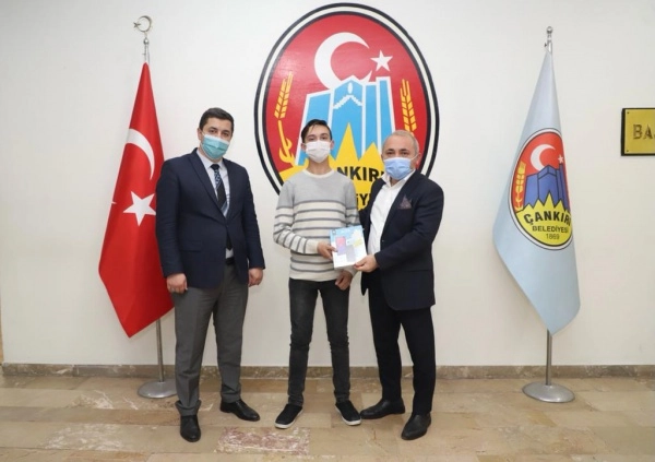 Çankırı Belediye Başkanı İsmail Hakkı Esen, başarılı öğrenciyi ödüllendirdi. Başkan Esen, Hacettepe Üniversitesi Ankara Devlet Konservatuvarı Müzik ve Bale Ortaokulu Kontrbas Ana Sanat Dalı 7. Sınıf öğrencisi Çankırılı Çağatay Yurt’u makamında ağırladı. Çankırı Belediyesi Engelliler Koordinasyon Merkezi üyelerinden Yurt ailesinin 12 yaşındaki oğlu, Belediye Başkanı İsmail Hakkı Esen’in de gurur kaynağı oldu. Okul yaşamı süresince gösterdiği azmi ile akranlarına örnek olan Çağatay Yurt ile Başkanlık makamında bir araya gelen Esen, genç öğrenci ile sohbet ederek hayalleri üzerine konuştu. Çankırılı gençlerin hedefleri yolunda güzel işlere imza attıklarını görmekten gurur duyduklarını ifade eden Esen, başarılarından dolayı Yurt’u tebrik ederek ödüllendirdi. Çankırı Belediyesi olarak Çankırılı çocukların hayallerini gerçekleştirme yolunda en büyük destekçisi olmaya devam edeceklerini vurgulayan Esen, Çağatay’ı gelecekte çok iyi orkestralarda aranan bir kontrbas sanatçısı olarak görmeyi arzuladıklarını belirterek en büyük emeği veren anne ve babasına teşekkür etti. Görüşmenin kendisini çok duygulandırdığını ve gururlandırdığını ifade eden Yurt, başta ailesi olmak üzere öğrenim hayatında kendisini destekleyen tüm hemşehrilerine teşekkür etti.