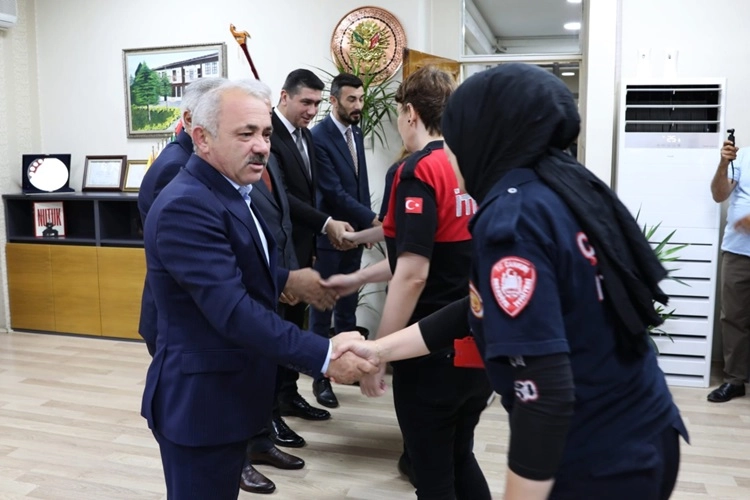 Çankırı Belediyesinde Kurban Bayramı sonrası bayramlaşma geleneği devam etti. Çankırı Belediye Başkanı İsmail Hakkı Esen, tüm personeli ile makamda bayramlaştı. Çalışanlarına hayırlı mesailer de dileyen Esen’e Başkan Yardımcıları ile Özel kalem Müdürü de eşlik etti.