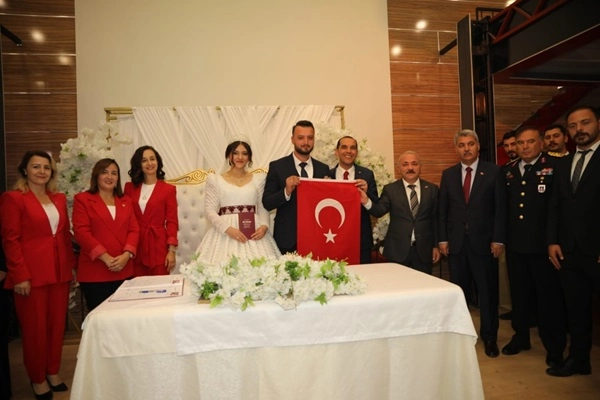 Çankırı’da evlenen Büşra Yıldırım ile Eşref Faruk Özler, Cumhuriyetin 100. yılının ilk nikâhı olarak kayıtlara geçti. Çiftin şahitliğini ise Vali Fırat Taşolar ve eşi, Belediye Başkanı İsmail Hakkı Esen ve eşi, İl Jandarma Komutanı Kıdemli Albay Yusuf Mutlu Genç ve eşi yaptı. Cumhuriyet coşkusu 7’den 70’e her alanda devam ediyor. Hayatını birleştirmek isteyen çiftlerin bazıları da 29 Ekim gününü tercih etti. Çankırı’da 29 Ekim’e nikâh tarihi alan üç çiften birisi olan Büşra ve Eşref Faruk, Cumhuriyetin 100. yılında Çankırı’da dünya evine giren ilk çift oldu.