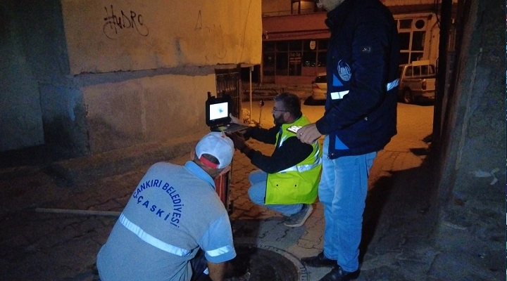 Kanalizasyon Sistemleri Kamera ile Görüntüleniyor Teknolojik imkânları sonuna kadar kullanan Çankırı Belediyesi, bu uygulamaların yanı sıra kameralı görüntü sistemi ile mevcut kanalizasyon ve yağmur suyu sistemlerinin sağlıklı çalışıp çalışmadığını da tespit ediyor. Arızaların kısa sürede tespit edilmesini sağlayan sistem, vatandaşın mağduriyetinin önüne geçiliyor.