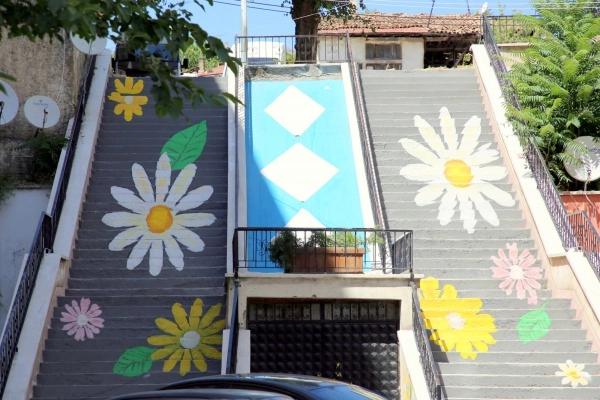 Çankırı’nın en işlek yerlerinden Atatürk Bulvarı’na inen merdivenlere çiçek resimleri uygulandı. Yeşil yapraklı rengârenk papatyalar ile süslenen merdivenler, görenlerin içini açtı. Çankırı Belediyesi, sokak sanatını kent estetiğine taşıdı. Atatürk Bulvarı’ndan ara sokaklara çıkan merdiven, çiçek resimleri ile renklendirildi. Daha önce şerit şeklinde boyanan merdivenlerin solmuş renkleri, uygulama ile yeni ve temiz bir görüntüye kavuştu. Belediye Başkanı İsmail Hakkı Esen, renklerin ve desenlerin insana huzur verdiğini söyleyerek “Hayatın renklerini kentimizin her noktasına taşımak istiyoruz. Kent estetiği çalışmalarımız kapsamında cadde ve sokaklarımızda uyguladığımız tasarım çalışmalarımızı şehrimizin merdivenlerini, duvarlarını, müsait alanlarını renklendirerek desteklemeyi hedefliyoruz. Sokak sanatı örnekleri birçok ülkede uygulanıyor. Bizler de Çankırı’mızda uygulayarak merdivenlerimizin yeni görünümünü halkımızın beğenisine sunuyoruz. Bu çalışmamız uygun olan farklı alanlarda devam edecek ve daha çok örneğini göreceğiz. Gençler, arkadaşları ve aileleri ile birlikte bu merdivenlerde çekilmiş fotoğraflarını paylaşabilirler. Hatta bu uygulamayı yapmak istedikleri alanlarda birlikte çalışabiliriz. Estetik adına çevremize katacağımız her renk, hayatımıza dokunacak bir güzellik olacaktır. ” dedi.