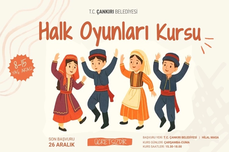 Çankırı’da yaşayan ailelerin yoğun ilgi göstermesi beklenen kurs için başvurular başladı. Halk oyunları kursuna katılmak isteyen çocukların başvuruları, 26 Aralık Cuma günü mesai bitimine kadar Çankırı Belediyesi hizmet binasının giriş katında yer alan Hilal Masa üzerinden yapılabilecek. Başvuru sürecinin tamamlanmasının ardından kurs çalışmaları başlayacak.