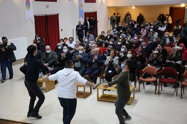 Çankırı Belediyesinin 3 Aralık Engelliler Günü öncesinde düzenlediği Engelsiz Müzikal etkinliği, izleyenleri eğlendirdi. Engelli vatandaşlar ve ailelerinin de yoğun katılımı ile gerçekleşen konser, Çankırılılardan tam not aldı. Çankırı Belediyesi Kültür ve Sosyal İşler Müdürlüğü bünyesinde faaliyet gösteren Engelliler Koordinasyon Merkezi organizasyonunda Engelliler Günü için farkındalık konseri düzenlendi. Gölbaşı Belediyesi Umutlu Yaşam Uygulama Merkezi (UYUM) Müzik Topluluğu tarafından Atatürk Kültür Merkezinde verilen konsere, topluluğun engelli üyelerinin seslendirdiği şarkı ve türküler damga vurdu. Müzik dinelme fırsatı bulan Çankırılılar, şarkılara eşlik ederken engeli olan çocuklar da oynayarak programa katıldı. Konserin açılış konuşmasını yapan Belediye Başkanı İsmail Hakkı Esen, programın gerçekleşmesine destek verdiği için Gölbaşı Belediye Başkanı Ramazan Şimşek’e ve ekibine teşekkür etti. Esen, “552 kayıtlı üyemiz var. Bizler göreve geldiğimizden beri yapılmış olanın üzerine neler ilave edebiliriz düşünüyoruz. Eski Ordu Evi binasını yenileyerek yaptığımız Sosyal Tesisimizin yanına engellilerimiz için bir merkez kurduk. Burada daha somut işler ve faaliyetler gerçekleştirmek istiyoruz. Engelli yaşamları engelsiz hale getirmek için burada engelli vatandaşlarımız ve aileleri ile birlikte daha uzun zaman geçirerek daha çok çalışma gerçekleştireceğiz.” dedi. Engelsiz Müzikal etkinliği sonrasında Gölbaşı Belediyesi UYUM Topluluğu üyeleri ile karşılıklı hediye takdimi gerçekleşti. https://youtu.be/VQfyOG4vYHg