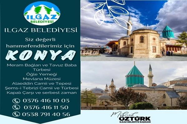 “Konya’yı Geziyoruz” Projesini başlatan Belediye, kentin kültürel mirasını vatandaşlarına yerinde gösteriyor. Belediye Başkanlığından yapılan açıklamada gezi için belirtilen irtibat numaralarından rezervasyon yaptırmak ve geziye katılacak bayanların isimlerini gezi öncesinde yazdırmaları gerektiği vurgulandı. Gezi kapsamında Konya ilinde Meram Bağları ve Tavuz Baba Türbesi, Mevlana Müzesi, Alaaddin Camii ve Tepesi, Şems-i Tebrizi Camii ve Türbesi ile Kapalı Çarşı gezilecek olup geziye öğle yemeği de dahildir. Konuyla ilgili açıklamalarda bulunan Ilgaz Belediye Başkanı Mehmed Öztürk: “Tarih boyunca dünyanın en önemli kadim şehirlerinden biri olan Konya’yı daha yakından görmek ve tanımak için Ilgaz’dan tüm hanım kardeşlerimizin katılabileceği ÜCRETSİZ günübirlik Konya gezilerimiz 19.09.2022 tarihinden itibaren başlıyor. Tüm hanım kardeşlerimizi geziye bekliyoruz.” ifadelerine yer verdi.