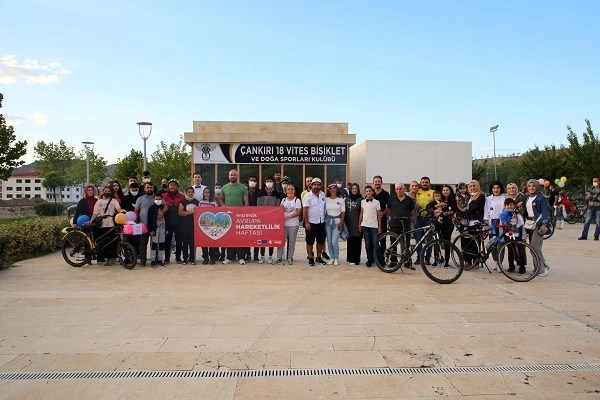 Çankırı Belediyesi 16-22 Eylül Avrupa Hareketlilik Haftası dolayısı ile bisiklet turu etkinliği düzenledi. Recep Tayyip Erdoğan Parkı’na bisikletleri ile gelen vatandaşlar, sağlıklı yaşam için hareketliliğe dikkat çekmek için bisikletleri ile turlar attı. Etkinliği izlemek isteyen vatandaşlar ise parka yürüyerek gelerek hareketli yaşama destek verdi. Çankırı Belediyesi Kültür ve Sosyal İşler Müdürlüğü, “Sağlıklı Yaşam İçin Hareketlenin” sloganı ile Avrupa Hareketlilik Haftası’na Çankırı’dan destek verdi. “Hareketli Yaşam İçin Biz de Varız!” diyen Çankırı halkı, bisikletleri ile birlikte etkinliğe katıldı. Kadın, erkek, genç, yaşlı, çocuk, engeli olan vatandaşları bir araya getiren etkinlikte pedallar bu kez sağlıklı ve hareketli yaşam için çevrildi. Çankırı 18 Vites Bisiklet ve Doğa Sporları Kulübü üyelerinin de katıldığı etkinlikte bisikletliler parkta tur atarken sporsever diğer vatandaşlar da park alanlarındaki spor alanlarını kullanarak hareketlilik haftasına destek verdi. Etkinlik sonunda katılımcılara ikramlarda da bulunuldu. https://youtu.be/7uke94BaOPQ