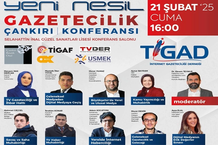 “Yeni Nesil Gazetecilik ve Dijital Medya Çalıştayı” düzenlenecek. AK Parti Çankırı İl Başkanı Koray Erdoğan ve İl Genel Meclis Başkanı Ahmet Ulusoy'un desteği ile düzenlenecek akşam yemeğinin ardından Çankırı Büyük Otel’de “TİGAD Genel Kurulu ve İl Temsilcileri İstişare Toplantısı” gerçekleştirilecek.