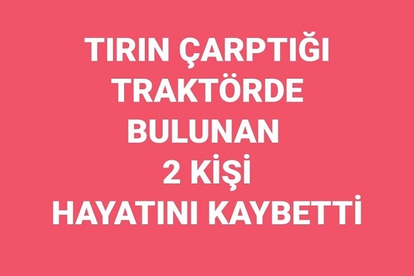 25 Ekim Salı günü (Dün) D 100 karayolu Ilgaz ilçesi yakınlarında meydana gelen trafik kazasında, İstanbul yönünden gelen tırın önünde giden römorklu traktöre arkadan çarpması sonucu traktörde bulunan 2 vatandaşımız hayatını kaybederken yaralı olarak kurtulan 2 kişi 112 Acil ambulanslarıyla hastaneye kaldırıldı. Dün meydana gelen feci kazada Kurşunlu'dan Ilgaz yönünde gitmekte olan H.Ş.'nin kullandığı traktöre aynı yönde giden S.B.'nin kullandığı tır arkadan çarptı. Çarpmanın etkisiyle traktörde bulunan sürücü H.Ş. ile S.K. ve A.Ş. isimli vatandaşlar yola savruldular. Olay yerine gelen 112 Acil ekipleri yola savrulan S.K.'nin hayatını kaybettiğini belirlerken durumu ağır olan A.Ş. ve sürücü H.Ş.'yi Çankırı Devlet Hastanesi Acil Servisi'ne kaldırdılar. Ağır yaralı olarak hastaneye getirilen A.Ş. burada yapılan tüm müdahalelere rağmen kurtarılamadı. Kaza sonrasında tır sürücüsü S.B. gözaltına alınırken kaza hakkında başlatılan soruşturma devam ediyor.