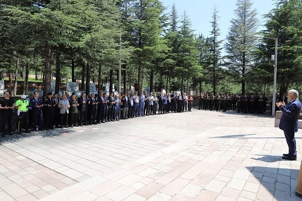 Yaklaşan Kurban Bayramı ve 9 günlük bayram tatili öncesinde şehitlerimiz, Çankırı Şehitliği'nde yapılan törende dualarla yad edildi. Saygı duruşu ve İstiklâl Marşımızın okunmasıyla başlayan anma programında şehitlerimizin ruhu için Kur'an-ı Kerim okundu, dualar edildi. Vali Abdullah Ayaz ve beraberindekiler şehitlerimizin kabirlerine karanfiller bıraktılar, el açıp dua ettiler. Program sonunda bir konuşma yapan Vali Ayaz, halkımızın bayramını kutladı ve birtakım önerilerde bulundu. "Bayramda birinci önceliğimiz trafik." sözleriyle yollardaki tehlikeye dikkat çeken Vali Ayaz, "Bu akşamdan itibaren yoğun bir trafik akışı başlayacak. Tüm vatandaşlarımızdan isteğimiz trafikte dikkatli olmaları, yorgunken uykusuzken araç kullanmamaları. Dün gece Çerkeş'te meydana gelen trafik kazasında 3 vatandaşımız hayatını kaybetti. Lütfen trafiğe çıkarken çok dikkatli olsunlar." dedi. Vali Ayaz, kurban kesimi ile ilgili olarak da hem Belediyeler hem de İl Özel İdaresi tarafından gerekli tedbirlerin alındığını, vatandaşlarımızdan kurban kesimi öncesi, kesim sırası ve sonrasında atıkların bertarafıyla ilgili hassasiyet beklediklerini söyledi. Vali Ayaz, "Kesilen kurbanlar inşallah paylaşıma vesile olsun, huzur getirsin. Allah memleketimize, insanımıza huzur ve sağlık versin." diyerek sözlerini sonlandırdı.