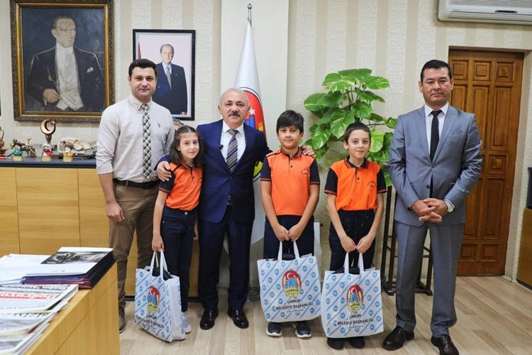 İlköğretim Haftası etkinlikleri kapsamında Adnan Menderes İlkokulu öğrencileri, Çankırı Belediye Başkanı İsmail Hakkı Esen’i makamında ziyaret etti. Öğrencilere Okul Müdürü Abdulkadir Kaya ve Sınıf Öğretmeni Mehmet Kurt eşlik etti. 2024-25 eğitim ve öğretim yılının başlaması dolayısı ile gerçekleştirilen ziyarette çocuklar, Başka Esen’e çiçek takdim etti. 4. sınıf öğrencileri Ahmet Yusuf Ünsal, Çınar Kurt ve Ayşe Nisa Gök ile sohbet eden Esen, onlara isteklerini de sordu. Tüm öğrenciler, öğretmenler ve veliler için verimli bir eğitim öğretim yılı olması temennisinde bulunan Esen, öğrencilere hediye takdim ederek eğitim hayatlarında başarılar diledi.