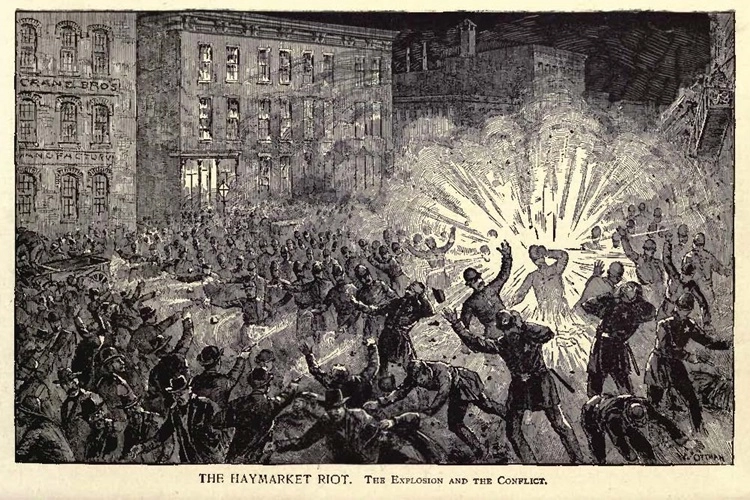 Haymarket Olayı 1 Mayıs 1886’da Louisville, Kentucky’de (ABD) başlayan işçi grevleri sonucu 4 Mayıs’ta yine aynı şehirdeki Haymarket Alanında gerçekleşen bir olaydır. Amerika İşçi Sendikaları Konfederasyonu, 1886’da Chicago’da toplandı ve 8 saatlik iş günü için 1 Mayıs’ı grev ve 8 saat uygulamasını hayata geçirme günü olarak ilan etti. 1 Mayıs 1886’da, yarım milyon işçi greve katılarak gösterilere katıldı. Louisville, Kentucky’de 6 binden fazla siyah ve beyaz işçi, birlikte yürüdü. O dönemde Louisville’deki parklar, siyahlara kapalıydı. İşçiler, sokaklarda yürüdükten sonra hep birlikte Ulusal Park’a girdi. Her eyalette siyah ve beyaz işçilerin birlikte yaptığı gösteriler, gazeteler tarafından “Böylece önyargı duvarı yıkılmış oldu” şeklinde yorumlandı. Grev ve gösteriler, 1 Mayıs’tan sonra da devam etti. İşçilerin çoğu 3 Mayıs’ta sokaklara çıktılar. McCormick’e ait fabrikadan çıkarılan ve grevde olan işçiler de miting yaptılar. Miting sona ermek üzereyken McCormick fabrika düdüğünü çalarak içerideki grev kırıcılarını dışarı çıkardı. Protesto eden işçilerin fabrikaya yöneldiği sırada polis ateş açarak 4 işçinin ölümüne ve onlarca kişinin yaralanmasına neden oldu. Bu saldırıyı protesto etmek için 4 Mayıs’ta Haymarket Alanı’nda miting düzenlendi. Miting tam dağılırken, kürsünün önüne belli olmayan bir yerden bir bomba atıldı. Bomba, polisin önünde patlayarak 7 polisin ölümüne ve 69’unun yaralanmasına neden oldu. Yüzlerce işçi asılsız suçlamalarla tutuklandı. Tutuklanan işçilerden sekizi yargılanmak üzere seçildi: Albert R. Parsons, August Spies, Samuel J. Fielden, Michael Schwab, Adolph Fischer, George Engel, Louis Lingg ve Oscar Neebe. En gençlerinden biri olan Louis Lingg, idamından bir gün önce intihar etti.