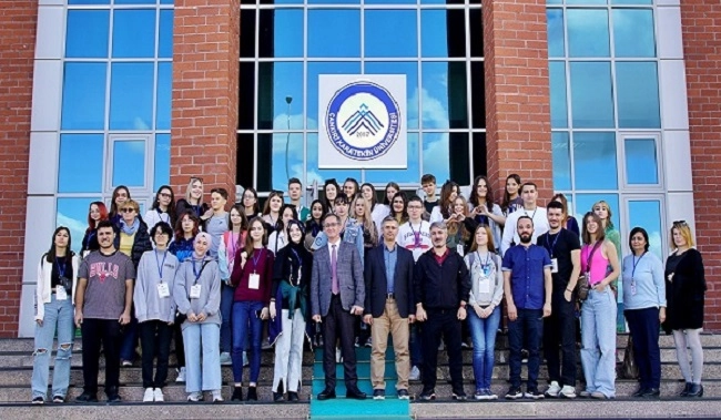 İlimizde faaliyet gösteren bir spor kulübünün Erasmus+ Gençlik Değişimi projesi ile Çankırı’da bulunan 5 farklı ülkeden 60 genç Çankırı Karatekin Üniversitesi’ni ziyaret etti. Kulüp Başkanı Ayhan Arslan ve spor eğitmenleri ile birlikte Çankırı Karatekin Üniversitesi’ni ziyaret eden ekibi Rektör Yardımcısı Prof. Dr. Hüseyin Odabaş ve ÇAKÜ Uluslararası Ofis Başkanı Dr. Öğr. Üyesi Şuayip Turan karşıladı. Misafir gruba ilk olarak ÇAKÜ ve ÇAKÜ’nün spor olanakları hakkında bilgi veren Prof. Dr. Hüseyin Odabaş, kendilerini misafir etmekten duydukları memnuniyeti ifade etti. Litvanya, Bosna-Hersek, Romanya, Ukrayna ve Türkiye’den toplam 60 gencin bulunduğu gruba hitap eden Odabaş, “Erasmus Değişim Projelerinde bütçe olarak Türkiye’de ilk iki içerinde olan Çankırı Karatekin Üniversitesi’nde yine bu proje ile ilimizde bulunan nitelikli ve sporcu genç bir grubu misafir etmekten son derece mutluyuz. Çankırı Karatekin Üniversitesi genç bir üniversite olmasına rağmen hem uluslararasılaşma, hem akademik, hem de sosyal projeler ile bugün adından söz ettiren ülkemizin önde gelen üniversitelerinden biridir. Sizlerin burada bulunmanızın nedeni olan spor olanakları açısından da bizim Üniversitemizin spor tesisleri teknik olanakları ve eğitici kadrosuyla çok iyi bir yerde olduğunu söyleyebilirim. Sevgili gençler günümüzün koşuşturma şartlarında spor yapabilmek ve bunun için vakit ayırabilmek çok önemli. Spor hem bizi sağlıklı ve zinde tutarken hem de günümüzün dijital çağında sosyal medyanın vaktimizin büyük bir bölümünü çaldığı bir dönemde onun zararlarından bizi korumak içinde bir amaçtır. Yani sosyal medya ve internette geçireceğimiz zamanı spora ayırabilirsek hem daha zinde hem daha sağlıklı oluruz. Sizlerin bunu başardığını düşünüyor ve hepinizi tebrik ediyorum. Ayrıca bu proje ile sizleri bizlerle buluşturan spor kulübümüzün Başkanı Ayhan Arslan hocaya ve çalışma arkadaşlarına teşekkür ediyorum.” dedi. Kulüp Başkanı Ayhan Arslan ise, “Biz her ne kadar yerel bir kulüp olsak da etki alanımız oldukça geniş. Proje ile gençlerimizin kariyer kaygısı yüzünden erken yaşta spordan kopmaları konusunu işleyerek, sporu terk etmelerinin ortadan kaldırılması, sporla kariyerin birlikte başarı ile yürütülebileceğinin anlatılması hedefledik. Spor, ülkelerin sağlık harcamalarını asgari seviyelere çekebilecek önemli bir etken. Gençlerimizi spora dahil etme politikalarımız kadar sporda kalmaları için de politikalar geliştiren ülkemiz, bu alanda gençlere veya velilere etki etmekte zorlanmakta. Bu anlamda projemize destek olan ve üniversitenin spor merkezini proje ekibimize açan başta Sayın Rektörümüz Prof. Dr. Harun Çiftçi başta olmak üzere tüm yöneticilerimize teşekkür ediyoruz.” şeklinde konuştu. Proje katılımcısı gençler de Çankırı’yı ve Çankırı Karatekin Üniversitesi’ni çok beğendiklerini, üniversite spor tesislerinin ise hem teknik hem de altyapı olarak çok gelişmiş olduğunu ifade ettiler. Gençler ayrıca kendilerine gösterilen misafirperverlik ve ilgiden dolayı üniversite yetkililerine teşekkür ettiler. Ziyaret sonunda Rektör Yardımcısı Prof. Dr. Hüseyin Odabaş, Kulüp Başkanı Ayhan Arslan ve misafir gençlere Tuz lambası hediye etti.