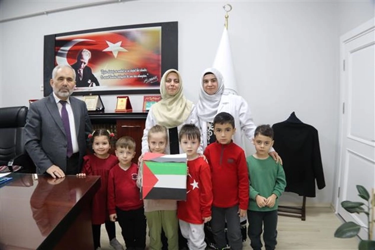 Çankırı İl Müftülüğü’ne bağlı Mehmet Akif Ersoy 4-6 Yaş Kur’an Kursu'nun minik öğrencileri, Filistin kriz bölgesine destek amacıyla topladıkları 6 bin 400 TL’lik yardımı İl Müftüsü ve Türkiye Diyanet Vakfı (TDV) Çankırı Şube Başkanı Mehmet Şahin’e teslim etti. Yardım teslim töreni, İl Müftülüğü makamında gerçekleştirildi. Törene Kurs Yöneticisi Zakire Kara ve Öğretici Emine Mantar da katılarak minik öğrencilerin anlamlı bağışını teslim ettiler. İl Müftüsü Mehmet Şahin, minik öğrencilerin bu duyarlı davranışını takdir ederek, Filistin halkına gösterilen bu destekten dolayı öğrencilere, velilere ve kurs yöneticilerine teşekkür etti. İl Müftüsü Mehmet Şahin, yardımların en kısa sürede Türkiye Diyanet Vakfı aracılığıyla Filistin’deki ihtiyaç sahiplerine ulaştırılacağını belirterek, bu tür yardımların manevi ve insani değerler açısından büyük önem taşıdığını vurguladı.