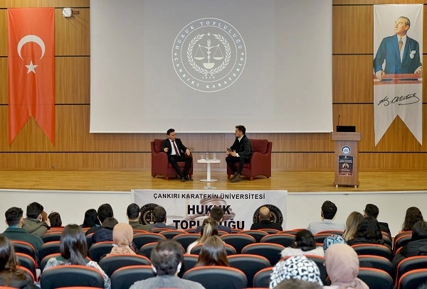 Çankırı Karatekin Üniversitesi Hukuk Topluluğu tarafından organize edilen "Hukukçular Baroyla Buluşuyor” söyleşisi Hukuk Fakültesi Konferans Salonunda gerçekleştirildi. Çankırı Barosu Başkanı Avukat Mustafa Deniz’in konuşmacı olduğu söyleşiye Çankırı Karatekin Üniversitesi Rektör Yardımcısı ve Hukuk Fakültesi Dekanı Prof. Dr. Hüseyin Odabaş, Hukuk Fakültesi Dekan Yardımcısı Dr. Öğr. Üyesi Çolpan Mücahit Küçük, akademisyenler ve öğrenciler tarafından da yoğun ilgi gösterildi. Öğrenim hayatı, kariyer yolculuğu ve mesleki tecrübelerini gençlerle paylaşan Deniz, samimiyet ve doğruluktan hiçbir zaman ayrılmadığını, bunun kendisi için büyük bir kazanç olduğunu ifade ederek, genç hukukçu adaylarına tavsiyelerde bulundu. Çankırı Karatekin Üniversitesine konuk olmaktan ve genç hukukçu meslektaşları ile buluşmaktan çok mutlu olduğunu ifade eden Baro Başkanı Deniz, mensubu olmaktan gurur duyduğum hukuk camiası ile olmak, geçmişi yaşamak ve öğrenci arkadaşlarımla bir araya gelmek benim için çok mutluluk verici bir durum. Hukuk fakülteli ve hukukçu olmak bir ayrıcalıktır. Bizim mesleğimiz dünyada yapılabilecek en kutsal mesleklerden biridir. Çünkü insan ve canlı için en önemli şey olan adaletin sağlanmasını icra eden bir meslektir. Bizim cübbelerimizde düğme ve cep yoktur. Eğer cübbelerinize düğme ve cep dikecekseniz bu mesleğe hiç başlamayın.” dedi. Gençlere fakülteyi bitirince iş imkanları, hukukçu olmanın ayrıcalıkları, avukatlık mesleği ve Çankırı Barosunun faaliyetlerinden bahseden Baro Başkanı Avukat Mustafa Deniz, öğrencilerin güncel konularla ile ilgili sorularını yanıtladı, öğrencilik ve meslek yaşamından anekdotlar anlattı. Başkan Deniz, “Her zaman gençlerimizin yanında ve destekçileri olacağız. Siz bizim geleceğimiz, yarınlarımızın teminatlarısınız. Eğitime ve sosyal projelere katkılarımız sürecektir. Üniversitemiz ile işbirliği halindeyiz, öğrencilerimiz için neler yapabiliriz, nasıl destekleyebiliriz diye düşünüyoruz. Böylesi güzel bir ortamda gençlerle bu keyifli söyleşi de olmamızı sağlayan sayın rektörümüze, kıymetli dekanımıza, katılımlarından dolayı tüm akademisyenlerimize ve sevgili öğrencilerimize çok teşekkür ederim. " şeklinde konuştu. Öğrencilerin sorularının cevaplanmasının ardından sone eren söyleşide, Başkana Çankırı Karatekin Üniversitesi Rektör Yardımcısı ve Hukuk Fakültesi Dekanı Prof. Dr. Hüseyin Odabaş ve Hukuk Fakültesi Dekan Yardımcısı Dr. Öğr. Üyesi Çolpan Mücahit Küçük tarafından plaket, çiçek ve hediye takdimi ve toplu fotoğraf çekimi gerçekleştirildi.