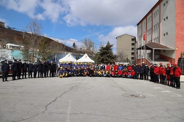 Valiliğimiz İl Afet ve Acil Durum Müdürlüğü (AFAD) tarafından ilimiz genelindeki okullarla eşzamanlı olarak Deprem Anı Tahliye, Yangın ve Üst Katlardan İndirme Tatbikatı gerçekleştirildi. Vali Abdullah Ayaz, Çankırı Belediye Başkanı İsmail Hakkı Esen, İl Jandarma Komutanı J. Alb. Yusuf Mutlu Genç, İl Emniyet Müdür Yardımcısı İskender Yılmaz, İl Afet ve Acil Durum Müdürü Abdullah Özçelik, İl Milli Eğitim Müdürü Muammer Öztürk, 112 Acil Çağrı Merkezi Müdürü Mehmet Toros ve ilgili personellerin katılımı ile 15 Temmuz Şehitler Anadolu Lisesi'nde gerçekleştirilen tatbikatta AFAD ve İtfaiye görevlileri tarafından temsili olarak deprem ve yangın anında yapılması gereken uygulamalar gösterildi. Tüm illerimizde eş zamanlı olarak yapılan tatbikat, Çankırı merkez ve ilçelerde bulunan bütün okullarda kurum müdürlerinin katılımıyla gerçekleştirildi. Tatbikata, ilçelerde Kaymakamlarımız da belirlenen okullarda eşlik ettiler. Eş zamanlı gerçekleştirilen tatbikatlar, ilimizde 27 bin 862 öğrenci, 2 bin 150 öğretmen ve kamu kurumlarından 550 personelin katılımıyla icra edildi. Tatbikatları AFAD Başkanlığı ile online bağlantı kurularak İçişleri Bakanı Süleyman Soylu ve Milli Eğitim Bakanı Mahmut Özer de canlı izledi.