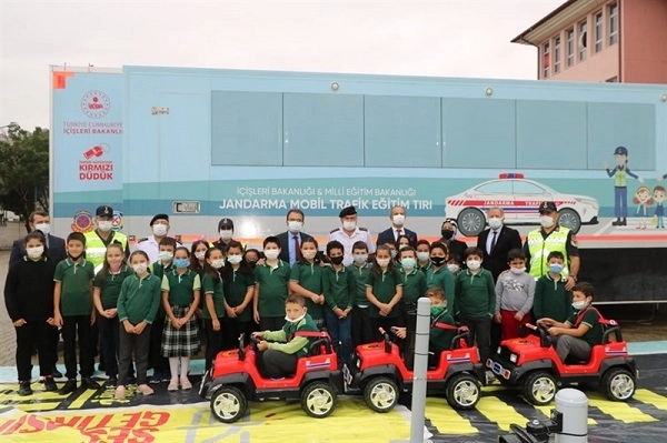 Ülkemiz genelinde trafik güvenliği konusunda mevcut farkındalığın arttırılması amacıyla İçişleri Bakanlığı ve Milli Eğitim Bakanlığı işbirliğinde, ilkokul öğrencilerinin trafik konusundaki farkındalığını geliştirmek için hayata geçirilen proje kapsamında “Mobil Trafik Eğitim Tırı” ile ilimizdeki ilkokul öğrencilerine trafik eğitimi veriliyor. Vali Abdullah Ayaz, ilimiz İsmail Hakkı Karadayı İlkokuluna kurulan trafik tırında eğitim alan öğrencileri yalnız bırakmadı. Mobil Eğitim Tırını ziyaret eden Vali Ayaz’a İl Jandarma Komutanı J. Alb. Yusuf Mutlu Genç ile İl Milli Eğitim Müdürü Muammer Öztürk de eşlik etti. Emniyet kemerinin önemine dikkat çekmek amacıyla hazırlanan araç simülasyonunu deneyen Vali Ayaz, bu simülasyonla herkesin emniyet kemerinin önemini net bir şekilde gördüğünü ifade etti. “Trafik bilincini oluşturmak, özellikle bu bilinci yeni nesilde oluşturmak en büyük hedefimizdir” diyen Vali Ayaz, “Her yıl ülkemizde 4 bin ile 6 bin arası vatandaşımızı trafik kazalarında kaybediyoruz. Maalesef 2021 yılının sonunda da bu rakamları göreceğiz. Bu ölümlerin yaşanmaması, kazaların tekrar etmemesi için bilinçli araç kullanımı, özellikle emniyet kemeri kullanımı şart” diye konuştu. Yeni nesilde trafik bilincini oluşturmayı amaçladıklarını vurgulayan Vali Abdullah Ayaz, “Gördüğünüz gibi burada öğrencilerimize trafikle ilgili temel eğitimi vermek adına trafik eğitim tırımız ve etkinlik parkurumuz var. Emniyet kemerinin önemini anlayabilmek için bir simülasyon aracımız var. Öğrencilerimiz burada aldıkları eğitimle daha bilinçli bir şekilde yetişeceklerdir. Tüm okullarımızda bu eğitim öğretim yılı içerisinde bir eğitim takvimimiz, planlamalarımız olacak. İnşallah kazasız belasız günler gelecek. Biz ilimizde de can kayıpları olsun istemeyiz. İnşallah yeni nesil bizlerden daha bilinçli olarak yetişecektir” ifadelerini kullandı. Vali Ayaz tır içerisinde temel trafik eğitimi alan öğrencilerin eğitimine de katılarak öğrencilere trafik kurallarına uymanın önemini anlattı. Vali Ayaz gazetecilerin pandemi süreciyle ilgili sorularını cevapladı. Geçen haftaya göre ilimizde az da olsa bir yükselme olduğunu ancak yoğun bakım ünitelerinde veya hastanede herhangi bir yoğunluğun olmadığını açıklayan Vali Ayaz, “Tekrar söylüyorum. Tedbirleri bırakmak için çok erken. Henüz o noktada değiliz. Aşılamada yüzde 78’i geçtik ama daha kat etmemiz gereken çok yol var. Okullar ister istemez bir hareket getirecek ama bir iki hafta içerisinde tekrar bir vaka sayısında gerileme sağlarız. Tekrar söylüyorum, kurallara uymayı ve aşı olmayı ihmal etmeyelim. Çünkü gördüğümüz az vatandaşımız hasta oluyor, az vatandaşımız yoğun bakımda yatıyor ama yoğun bakımdaki hastalarımızın çoğunu kaybediyoruz. Sizlerin de gördüğü gibi can kayıpları 250-270 bandının altına pek düşmüyor. 3’üncü doz aşısını olmayan vatandaşlarımızın bir an önce aşı olmalarını istiyoruz.”