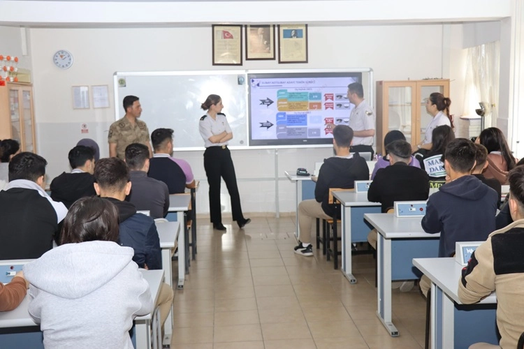 Çankırı Lisesi öğrencilerine yönelik askerlik mesleği tanıtımı gerçekleştirildi. Çankırı İl Jandarma Komutanlığı personeli tarafından İçişleri Bakanlığı ve Milli Eğitim Bakanlığı ortak programı çerçevesinde düzenlenen tanıtım etkinliğine 38 öğrenci katılım sağladı. Programda, Jandarma Komutanlığının çalışma prensipleri ve birimlerini tanıtan videonun izlenmesinin ardından, Jandarma personelinin görev ve sorumluluk alanları hakkında paylaşımlarda bulunuldu. Jandarma ve Sahil Güvenlik Akademisinin eğitim ve giriş koşulları ile ilgili detaylı bilgilerin de sunulduğu tanıtım etkinliğinde, Jandarma bünyesinde kullanılan araçların isimleri ve görevleri hakkında bilgilendirme yapıldı.