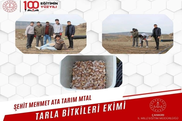 Çankırı’da tarım alanında eğitim gören öğrenciler, teorik bilgilerini sahada uygulama fırsatı buluyor. Şehit Mehmet Ata Tarım Mesleki ve Teknik Anadolu Lisesi tarafından yürütülen uygulamalı eğitim çalışmaları kapsamında öğrenciler, okulun uygulama alanında sarımsak ekimi gerçekleştirdi.