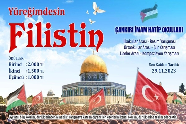 Çankırı İl Milli Eğitim Müdürlüğü Merkez İlçe İmam Hatip Okulları öncülüğünde "Yüreğimdesin Filistin" konulu il geneli resim, şiir ve kompozisyon yarışması düzenleniyor.