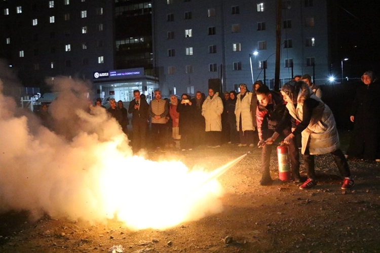 Senaryo gereği yurtta yangın alarmının çalmasıyla başlayan tatbikatta, öğrenciler panik oluşturmadan, düzenli ve hızlı bir şekilde bina dışına tahliye edildi. AFAD ekipleri, tahliye sürecindeki doğru davranış modellerini öğrencilere uygulamalı olarak gösterdi. Ardından katılımcılar, yangın söndürme tüplerinin nasıl kullanılacağını uzmanların gözetiminde deneyimleyerek pratik eğitim alma fırsatı buldu.