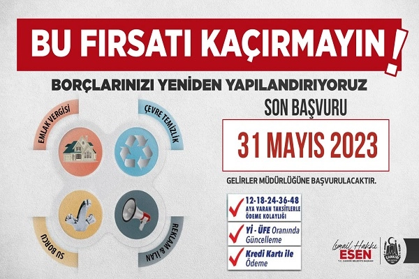 Çankırı Belediyesi, 7440 Sayılı Bazı Alacakların Yeniden Yapılandırılması ile Bazı Kanunlarda Değişiklik Yapılması Hakkında Kanun kapsamında vatandaşların belediyeye olan su, emlak ve kira borçlarını yeniden yapılandırıyor. Yapılandırmadan yararlanmak isteyen aboneler, 31 Mayıs 2023 tarihine kadar Çankırı Belediyesine şahsen müracaat ederek uygulamadan yararlanabilecek. Borçların peşin ödenmesi durumunda yurt içi ÜFE oranında hesaplanan tutardan ayrıca %90 indirim uygulanacak. Vergi aslına bağlı olmayan usulsüzlük ve özel usulsüzlük cezalarında %50, idari para cezalarında ise % 25 indirim yapılacak. Abonelere kolaylık olması amacı ile yapılandırılan tutarlar, aylık dönemler halinde 48 aya varan sürelerde taksitle ödenebilecek. Borçlarını yeniden yapılandırmak isteyen vatandaşlar, 31 Mayıs 2023 Çarşamba günü mesai bitimine kadar Belediye Hizmet Binası 1. kat Gelirler Müdürlüğü Tahsilat Servisine başvuru yapabilecek.