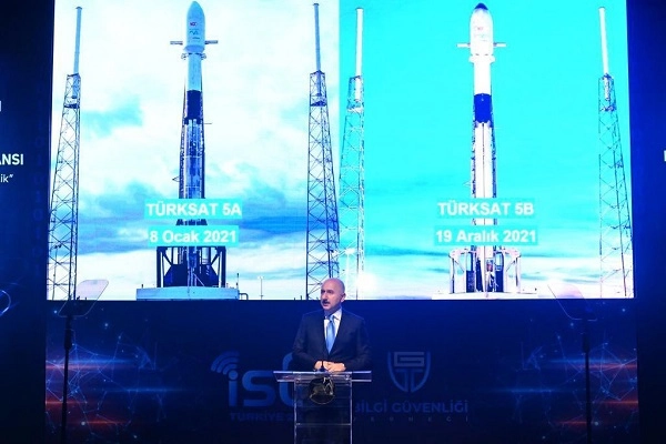TÜRKSAT 6A'NIN ENTEGRASYON VE TESTLERİ HIZLA DEVAM EDİYOR Türksat 5A ve Türksat 5B'nin de hizmete alındığını anımsatan Karaismailoğlu, yakın zamanda hizmete giren Türksat 5B haberleşme uydusunun, mevcut genişbant veri haberleşme kapasitesini 15 kat artıracağını dile getirdi. "Türksat 5B ile Ka Bant kapsama alanında yer alan tüm sabit ve hareketli kara, deniz ve hava araçlarına geniş bant veri haberleşme imkanı sağlıyoruz" diyen Karaismailoğlu, ilk yerli ve milli haberleşme uydusu Türksat 6A'nın entegrasyon ve testlerinin hızla devam ettiğini, bu uyduyu Cumhuriyet'imizin 100. kuruluş yıl dönümünde uzaya göndereceklerini söyledi.