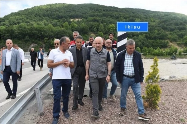 KÖY YOLLARI VE GRUP YOLLARINDA ÇALIŞMALARIMIZ DEVAM EDİYOR Geçen yıl Ağustos ayında Batı Karadeniz'de büyük bir sel felaketi yaşandığını anımsatan Karaismailoğlu, "Maalesef kayıplarımız da olmuştu. Onun sonrasında tedbirlerimizi aldık. Çalışmalarımıza hızlıca başladık. Onlarca köprümüzü yeniledik, yeniden yaptık. Sellere afetlere dayanıklı köprüler inşa ettik. Şu an arkamızda görünen köprü de yine kışın ortasında açtığımız önemli yapılardan bir tanesi olan İkisu Köprüsü. Buna benzer pek köprüyü bölgede bitirdik. Bu köprüler sayesinde son yağışlardan bölgelerimiz hiç etkilenmedi. Tabi eksiklerimiz var. Özellikle köy yollarında, grup yollarında çalışmalarımız devam ediyor" ifadelerini kullandı.