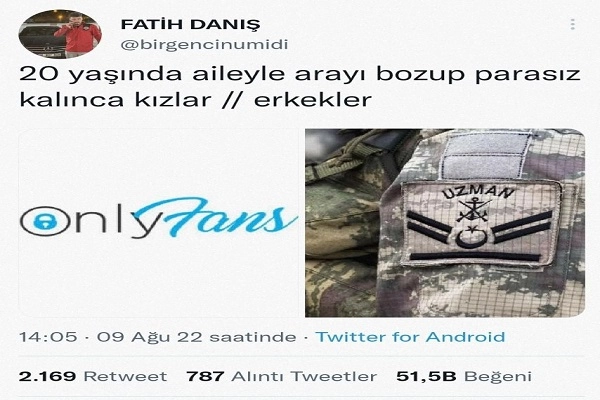 Uzmanlar Federasyonu Genel Başkanı Ali Tilkici, sosyal medya üzerinden Uzman Çavuşlara çirkin benzetmeler yapan Fatih Danış isimli kullanıcıya ateş püskürdü. Medya Ankara'nın haberine göre "20 yaşında aileyle arayı bozup parasız kalınca kızlar // erkekler" şeklinde paylaşım yaparak, genç kızların kötü yola düştüğü erkeklerin de uzman çavuş olduğu yönünde ifadeler kullanan Fatih Danış isimli kullanıcıya Uzmanlar Federasyonu Genel Başkanı sert tepki gösterdi ve konuyu yargıya taşıdı. Sadece bu hafta yedi şehit veren kahraman ordumuzun yiğit uzman çavuşlarına yapılan hakareti gündeme getiren Ali Tilkici şu ifadeleri kullandı: