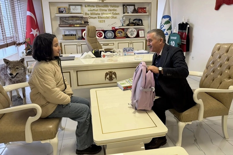 Yavuz Sultan Selim Ortaokulu 7. sınıf öğrencisi Aybüke, LGS sınavlarına daha iyi hazırlanabilmek amacıyla Ilgaz Belediyesi’ni ziyaret ederek kaynak kitap talebinde bulundu. Öğrencinin samimi isteğini geri çevirmeyen Belediye Başkanı Mehmed Öztürk, Aybüke’ye bir çanta ile birlikte LGS hazırlık sürecinde kullanabileceği kaynak kitap seti hediye etti.