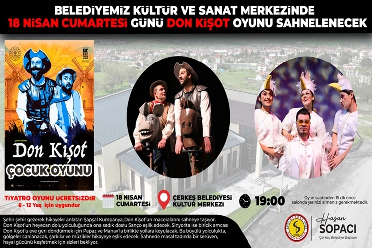 Çerkeş Belediye Başkanı Hasan Sopacı’nın öncülüğünde devam eden kültür-sanat programları sayesinde ilçe halkı, profesyonel tiyatro ekipleriyle buluşma fırsatı yakalıyor. Bu kapsamda sahnelenecek “Don Kişot” oyunu da hem eğlenceli hem de öğretici içeriğiyle dikkat çekiyor.