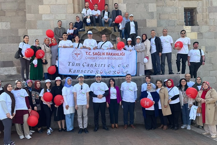 İl Sağlık Müdürlüğümüzce “1-7 Nisan Ulusal Kanser Haftası” etkinlikleri kapsamında 3 Nisan 2024 Çarşamba günü saat 14.00’de, Çankırı'da Selçuklu Dönemi'nden kalma en önemli yapılarından olan ve şifahane ve darulhadis olarak yapılmış Taşmescit önünde, kanser taramalarının ve erken teşhisin önemine dikkat çekmek ve toplumda farkındalık oluşturmak amacıyla “Kanseri Birlikte Yenebiliriz” temalı etkinlik düzenlenmiştir. Son yıllarda yapılan çalışmalar, kanser konusunda en önemli kontrol stratejisinin korunma ve erken teşhis olduğunu göstermektedir. Bu önemli sağlık sorununa halkın dikkatinin çekilmesi, toplumun kansere yönelik bilincinin arttırılarak farkındalık oluşturulması ve ücretsiz kanser taramalarına halkın katılımını artırmak Kanserle mücadelede oldukça önemlidir. Etkinliğe katılan İl Sağlık Müdürümüz Dr. Hüseyin Sarıkaya tarama yaş grubundaki tüm vatandaşlarımızı taramalarını yaptırmak üzere sağlık kuruluşlarımıza davet etmiştir. Hafta boyunca yürütülen eğitim ve farkındalık çalışmalarını yürüten tüm çalışanlarımıza teşekkür etmiştir.