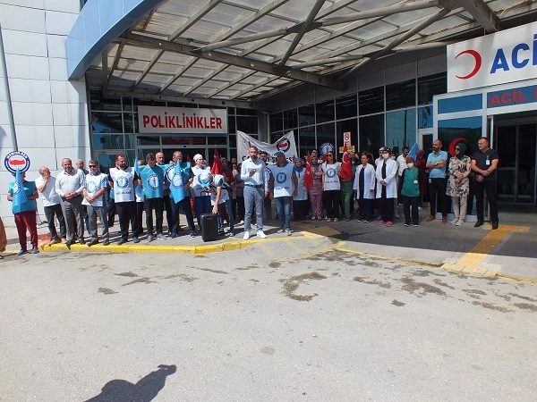 Konya'da görev yaptığı Şehir Hastanesi'nde, bir hastasının yakını olan Hacı Mehmet Akçay tarafından tabancayla vurularak öldürülen Kardiyoloji Uzmanı Dr. Ekrem Karakaya, memleketi olan Kayseri'nin Develi ilçesinde son yolculuğuna uğurlandı. Karakaya'nın canice katledilmesi, tüm yurtta eylemler ve basın açıklamaları ile protesto edildi. Sağlık-Sen Çankırı Şube Başkanı Tuna Dinç, sendika yönetimi ve Sağlık-Sen üyeleri ile birlikte Çankırı Devlet Hastanesi önünde Dr. Ekrem Karakaya'nın öldürülmesini bir basın açıklamasıyla protesto etti. 1 Milyon 200 bin sağlık emekçisinin laf değil icraat beklediğini vurgulayan Dinç, açıklamasına şöyle devam etti: "Değerli basın mensupları; Sürekli uyarılarımıza, tedbir çağrılarımıza rağmen maalesef dün Konya'da bir defa daha korktuğumuz başımıza geldi. Hepinizin bildiği gibi bir doktor arkadaşımız, canice katledildi. Hayatının baharında caninin kurşunlarına hedef olan Uzm. Dr. Ekrem Karakaya, görevi başında, yeni çalışmaya başladığı hastanede katledildi. Katliam aleti ise bir silah... Tablonun vehametini düşünebiliyor musunuz? Bir doktor, şifa dağıtılan bir merkezde, yani hastanede, hasta yakınının kurşunlarına hedef oluyor ve can veriyor. Hastalara şifa dağıtmak, can kurtarmak için alın teri döküyor. Ve karşılığını canıyla ödeyerek şehit oluyor... Biz sağlık çalışanları olarak bu duruma isyan ediyoruz. Saldırıyı lanetliyoruz... Ve can güvenliğimiz sağlansın istiyoruz. Açıkça buradan bir defa daha deklare ediyoruz; Sağlık emekçilerinin can güvenliği artık sağlansın. Aksi halde sağlık kuruluşlarında hizmet sunmak mümkün olmayacaktır. Hekiminden hemşiresine, teknisyeninden memuruna sağlık çalışanlarının onlarca sorunu bulunuyor. Ancak hiçbiri can güvenliği kadar sağlık kuruluşlarında kol gezen şiddet kadar can yakıcı değil... Can güvenliği sağlanmadığı için, yeterli tedbir alınmadığı için, Ekrem Hocamızın örneğinde olduğu gibi canımız yanıyor, isyan ediyoruz... Bazen yaralanıyoruz, bazen hakaret, küfür ve tehditlere maruz kalıyoruz... Bazen sinip içe kapanıyoruz, meslekten soğuyoruz. Ve hatta çekip gidiyoruz... Tüm bunların yanı sıra ise her daim korku halinde yaşıyoruz... Buradan soruyoruz: Böyle bir ortamda kutsal sağlık mesleğini nasıl aşk ve şevkle icra edelim? Buradan soruyoruz: Daha ne zamana kadar sağlık kuruluşlarına elini kolunu sallayarak suç aletleriyle girmek serbest olacak? Öldürücü, yaralayıcı silah ve aletlerin içeri sokulmasına, ne zamana kadar göz yumulacak? Kaç canımız yitecek? Daha nice canlarımız acıyacak soruyoruz? Açıkçası 1 Milyon 200 bin sağlık emekçisi bu konuda laf değil icraat bekliyor artık. Başka Ekrem Hocalar ölmesin istiyoruz... Başka canlar yanmasın istiyoruz... İşimizi korkmadan, emniyet içinde yapmak istiyoruz. Bu kararlılığımızı siyasi iradeye göstermek içinde bugün, Türkiye genelinde iş bırakıyoruz... Tüm vatandaşlarımızı bu konuda bize destek olmaya davet ediyoruz... Ve herkese de sağlık çalışanlarının bu ülkenin hayat sigortası olduğunu buradan bir daha hatırlatıyoruz... Sözlerimizi burada sonlandırırken, şehit doktorumuza Allah'tan rahmet, ailesine, yakınlarına ve sağlık camiamıza sabır diliyoruz. BAŞIMIZ SAĞOLSUN..."