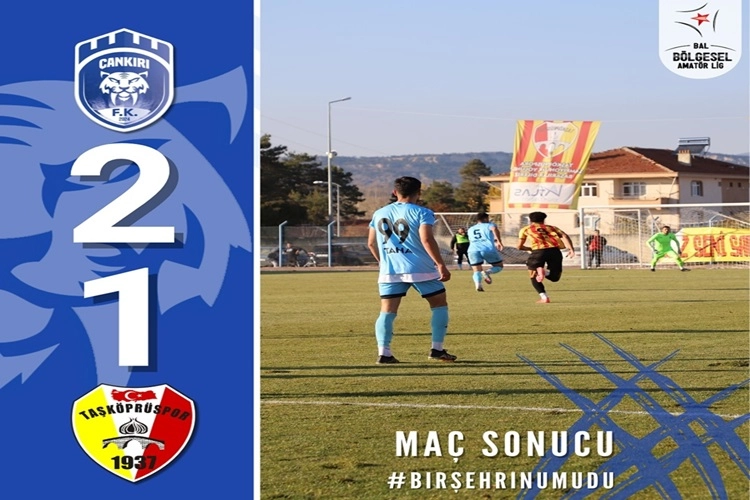 Bölgesel Amatör Lig (BAL Ligi) 5. Grupta ilimizin tek temsilcisi Çankırı FK, bugün deplasmanda karşılaştığı Kastamonu Taşköprüspor karşısında aldığı 2-1’lik galibiyetle Ligin 2. sırasındaki yerini korudu. Oynadığı 8 maçın 7'sini galibiyetle taçlandıran Çankırı FK, 24 puanlı Karadeniz Ereğli Belediyespor'un ardından 21 puanla BAL Ligi 5. Grupta 2. sırada. 17 Kasım Pazar günü (bugün) Taşköprü İlçe Stadı'nda oynanan maça hızlı başlayan Çankırı Futbol Kulübü, 9. dakikada Mustafa Değirmenci’nin golüyle 1-0 öne geçti. Ancak Taşköprüspor, arayı fazla açmadı ve etkili ataklar sonunda 33. dakikada Eren Altuntaş'ın ayağından gelen golle 1-1'lik eşitliği sağladı. İlk yarı bu skorla tamamlandı. Karşılaşmanın ikinci yarısında da Çankırı FK rüzgarı esti. Her iki takımın da gol arayışları 55. dakikada son buldu ve Çankırı FK, Taha Arslan’ın golüyle yeniden öne geçti. Maçın skoru olan bu golle Çankırı FK, rakibi karşısında deplasmanda oynadığı maçta 2-1’lik üstünlüğü sağlamış oldu. Çankırı FK, aldığı bu galibiyetle şampiyonluk hedefine 1 adım daha yaklaştı.