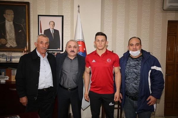 Çankırı Belediye Başkanı İsmail Hakkı Esen, Dünya Şampiyonu güreşçisi Kadir Güleşen’i altın ile ödüllendirdi. Başkanlık makamında gerçekleşen görüşmede Esen, genç güreşçiyi ve Antrenörü Seyfettin Karadeniz’i tebrik etti. Başkan Esen, Kahramanmaraş'ta düzenlenen Şalvar Güreşi Dünya Şampiyonası'nda 80 kg’da Dünya Şampiyonu olarak madalyayı Çankırı’ya getiren Belediyespor Kulübü güreşçisi Kadir Güleşen’i makamında ağırladı. Farklı ülkelerden gelen güreşçiler karşısında kıyasıya bir mücadele vererek şampiyonluğunu ilan eden güreşçisini tebrik eden Esen, “Er meydanını Çankırılı gençlerimizin başarısı ile doldurmak bizi yüreklendiriyor, gururlandırıyor. Güreşteki başarımız, milli ve manevi değerlerimizi geleceğe taşıdığımızın önemli bir göstergesidir.” dedi.