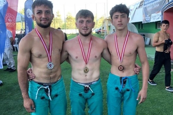 Sivas Muhsin Yazıcıoğlu Karakucak Güreş Festivali Türkiye Şampiyonası’nda Yıldızlar kategorisi Türkiye Şampiyonluğu ve üçüncülüğü ile Büyükler kategorisi ikinciliği Belediye Başkanı İsmail Hakkı Esen’in güreşçilerine gitti. Er meydanı Çankırı anonsları ile inledi. Çankırı Belediye Başkanı İsmail Hakkı Esen’in güreşçileri, iki farklı er meydanından madalyalar ile döndü. Sivas’ta Muhsin Yazıcıoğlu adına düzenlenen Karakucak Güreş Festivali Türkiye Şampiyonası ile İstanbul Silivri’de düzenlenen güreşlere katılan Çankırı Belediyesi Gençlik Spor Kulübü Güreş Takımı, yine beklenileni yaparak madalyaları evine getirdi. 70 kg’da yarışan Fatih Özgen, Yıldızlar kategorisinde Türkiye Şampiyonu olurken, aynı kategoride 55 kg’da yarışan Abdulkadir Koçyiğit Türkiye üçüncüsü, Büyükler 74 kg’da yarışan Burak Özgen ise Türkiye ikincisi oldu. Sivas’tan üç madalya ile dönen güreşçilerin başarısına takım arkadaşlarından da bir başarı daha geldi. İstanbul Silivri Güreşlerinde performans sergileyen Kadir Güleşen, Başaltı Boy’da üçüncü oldu. Başkan Esen, antrenörleri Seyfettin Karadeniz eşliğinde üstün performans sergileyen tüm güreşçilerini tebrik etti.
