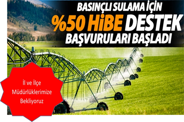 Kırsal Kalkınma Destekleri Kapsamında Bireysel Sulama Sistemlerinin Desteklenmesi Tebliği (Tebliğ No:2021/7) gereği 2024 yılı başvuruları 09 Ocak 2023 tarihinde başladı. Hibe programından faydalanmak isteyen yatırımcıların 22 Şubat 2024 tarihi saat 17.00'a kadar İl Müdürlüğümüz Kırsal Kalkınma ve Örgütlenme Şube Müdürlüğüne başvurmaları gerekiyor.