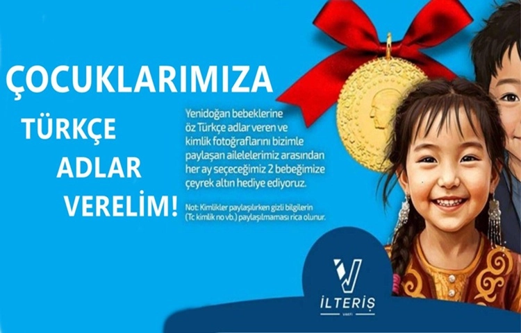 İlteriş Vakfı, Türk kültürünü ve dilini yaşatmak amacıyla anlamlı bir kampanya başlattı. Vakıf tarafından yapılan açıklamaya göre, yeni doğan çocuklarına öz Türkçe isim veren ailelere, çeyrek altın hediye edilecek. Kampanya ile hem Türkçenin zenginliğine dikkat çekmek hem de gelecek nesillerde Türk adlarının yaygınlaşmasını sağlamak hedefleniyor. Vakıf yetkilileri, bu uygulamanın toplumda farkındalık oluşturacağını ve çocuklara verilen isimlerin taşıdığı kültürel mirasın daha iyi anlaşılacağını belirtti. Başvurular, vakfın sosyal medya hesapları üzerinden yapılabilecek. Belirlenen kriterlere uyan ailelere çeyrek altın, doğum sonrası belgelerle birlikte teslim edilecek. İlteriş Vakfı, bu kampanyayla birlikte dilimize sonradan girmiş yabancı kökenli isimler yerine, anlamı ve kökeni Türkçe olan isimlerin yeniden gündeme taşınmasını amaçlıyor.