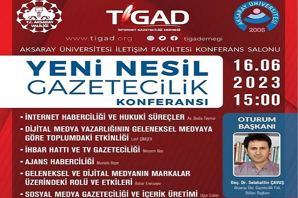 Türkiye İnternet Gazeteciliği Derneği, Aksaray’da “Yeni Nesil” olarak adlandırılan dijitalleşen gazeteciliği farklı yönleriyle ele almak üzere kapsamlı ve yankı uyandıracak bir buluşma gerçekleştirecek. Aksaray Valiliği ve Aksaray Üniversitesi işbirliğinde gerçekleşecek organizasyon kapsamında 16 Haziran Cuma günü Aksaray Üniversitesi’nde Yeni Nesil Gazetecilik Konferansı gerçekleşecek. Türkiye’nin dört bir yanından internet gazetecileri, TİGAD il temsilcileri, Aksaray yerel basını, Aksaray Üniversitesi akademisyenleri ve ulusal çapta tanınan ve takip edilen basın mensupları Aksaray’da bir araya gelerek gelenekselden dijitale geçiş sürecinde olan gazeteciliğin durumu, hedefleri, sorunları gibi bir çok farklı konuyu masaya yatıracak. Aksaray Üniversitesi İletişim Fakültesi Gazetecilik Bölüm Başkanı Doç. Dr. Selahattin Çavuş’un oturum başkanlığını üstelendiği Yeni Nesil Gazetecilik Konferansı’nda haberler.com ve sondakika.com haber siteleri Genel Yayın Yönetmeni Av. Bedia Teymur, Gazeteci Yazar Latif Şimşek, Kanal 7 Haber Spikeri Meryem Nas, İHA İstanbul Anadolu Yakası Bölge Müdürü Mustafa Biçer, Basın Danışmanı ve TV Sunucusu Bahar Erensayın, İçerik Editörü ve TİGAD Genel Sekreteri Uğur Eskier konuşmacı olarak yer alacaklar. İnternet haberciliği ve hukuki süreçler, dijital medya yazarlığının geleneksel medyaya göre toplumdaki etkinliği, ihbar hattı ve TV gazeteciliği, ajans haberciliği, geleneksel ve dijital medyanın markalar üzerindeki rolü ve etkileri, sosyal medya gazeteciliği ve içerik üretimi konuları, konferansın ana eksenini oluşturuyor. Aksaray’da gerçekleşecek program, konferansın ardından katılımcılar Aksaray’ın tarihi, turistik ve doğal güzelliklerini görme ve deneyimleme imkanı bulacak. Yeni Nesil Gazetecilik Konferansı ve Aksaray Gezi Programı üç gün devam edecek. Organizasyonun gezi rotası ise şöyle: Ihlara Vadisi, Güzelyurt, Narlıgöl, Selime, Taptuk Emre, Yunus Emre ve Ortaköy.