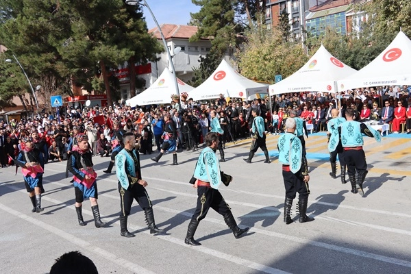 Vali M. Fırat Taşolar’ın konuşmasının ardından öğrenciler tarafından Cumhuriyeti anlatan şiirler okundu, 100. Yılda 100 Yaren gösterisi, İl Jandarma Komutanlığı Asayiş Komando Bölük Komutanlığının silahlı gösterisi ve Çankırı Karatekin Üniversitesi Halk Oyunları Ekibinin gösterisi sunuldu. Birbirinden renkli görüntülerin yer aldığı programda meydana çıkan 100 yaren, Çankırı kültürünü ve dayanışmasını sergiledi. Gösteri, meydanı dolduran vatandaşlardan büyük alkış aldı.