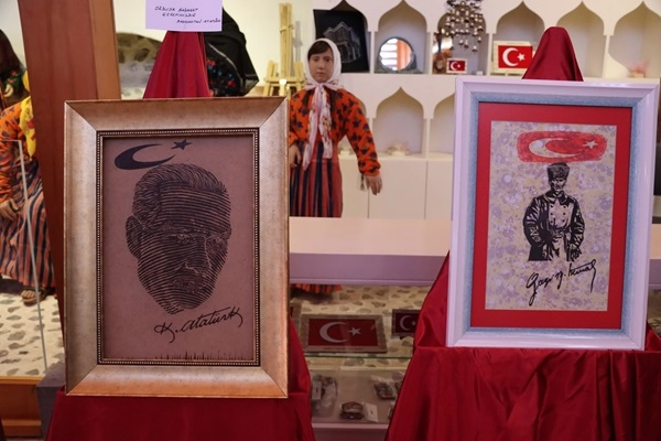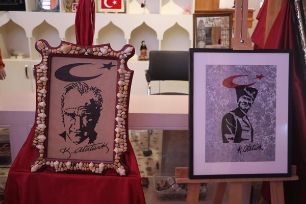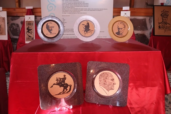 "Bendeki vatan sevgisi, ATATÜRK sevgisi beni bu sergiyi açmaya zorladı. Bugün bu kadar rahat yaşayabiliyorsak, ulu önder ATATÜRK sayesindedir. ATATÜRK ile ilgili değişik çalışmalarım var. Pullarım var, resimlerim var, daha önce ben rölyef çalışmaları yapıyordum rölyefte de ATATÜRK portrelerini kullandım. 2 senedir de yakma tablo yapmaya başladım ve 2 sene önce Allah sağlık verirse Cumhuriyetimizin 100. yılına özel olmak üzere 100 eser hazırlamaya karar verdim. Burada gördüğünüz eserler 2 yıllık bir emeğin ürünüdür. Gördüğünüz çerçeveler de bana aittir onları da ben tek tek uğraşarak kendim yaptım.