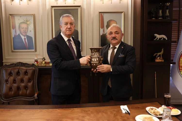 Ziyaretin sonunda Başkan Esen, Durmaz’a anlamlı bir hediye olarak replika “İnandık Vazo” takdim etti.