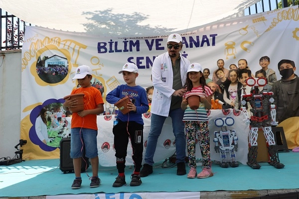 5-13 yaş arası çocuklara yönelik düzenlenen Bilim ve Sanat Şenliği’ne katılan çocuklar, atölye çalışmalarında yapılan etkinlikleri pür dikkat izledi. Planetaryum ve teleskop ile Güneş’i gözlemleme, Sifigu bilim, sahne ve deney gösterileri, çılgın robotlar, roket fırlatma, karışımların yapıldığı renkli kimya atölyesi, kukla yapımı, ebru atölyesi, gazete kâğıtlarından geri dönüşüm atölyesi, seramik, ritm, bilim düzenekleri ve 3D kalem stantları çocukların meraklı bakışlarına şahitlik etti.
