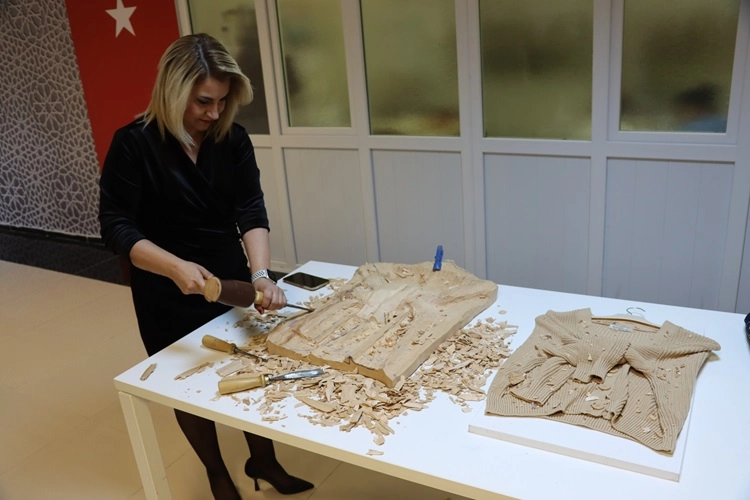 Çankırı Karatekin Üniversitesi Öğretim Görevlisi Doç.Dilek Öcalan, 19 yıldır ahşap işleme sanatıyla uğraşıyor. Öcalan, takoz, keski ve zımpara yardımıyla ortaya çıkan eserlerini ilk olarak dedesinden kalan bir ceketten aldığı ilhamla yapmaya başlamış. Annesinin, rahmetli dedesine ait bir ceketi sandıkta sakladığını ve bu durumun kendisini çok etkilediğini anlatan Öcalan, "Ben de o dönem ağaçtan bir tasarım yapmayı düşünüyordum. Annemin de ceketi sakladığını görünce kıyafetlerin duygusal bir bağ oluşturduğunu keşfettim ve ertesi gün ağaçtan bir kıyafet tasarımı yapmaya başladım. Kıyafetlerin anı biriktirme gibi bir özelliği var. Giyen kişin tüm özelliklerini o kıyafet taşıyor. Ben de çalışmalarımı yaparken biraz duygusal düşünüyorum. Bu süreçte de yaptığım eserle aramda bir bağ oluyor." dedi.