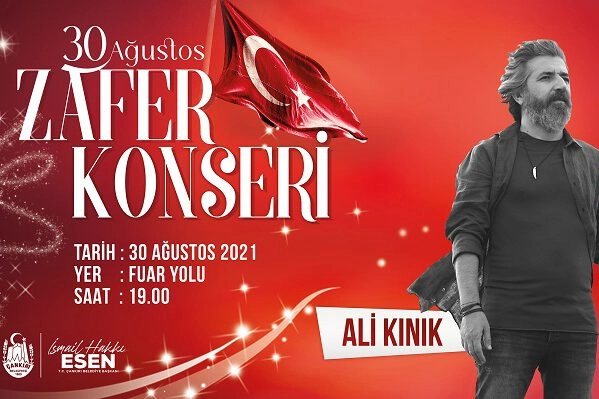 Çankırı Belediyesi, zafer kutlamalarını Fuar yolunda gerçekleştireceği açık hava halk konseri ile taçlandıracak. Konserde eşsiz dizelerin sahibi müzisyen Ali Kınık ve Türk pop müziğinin yıldızlarından Ece Seçkin sahne alacak.