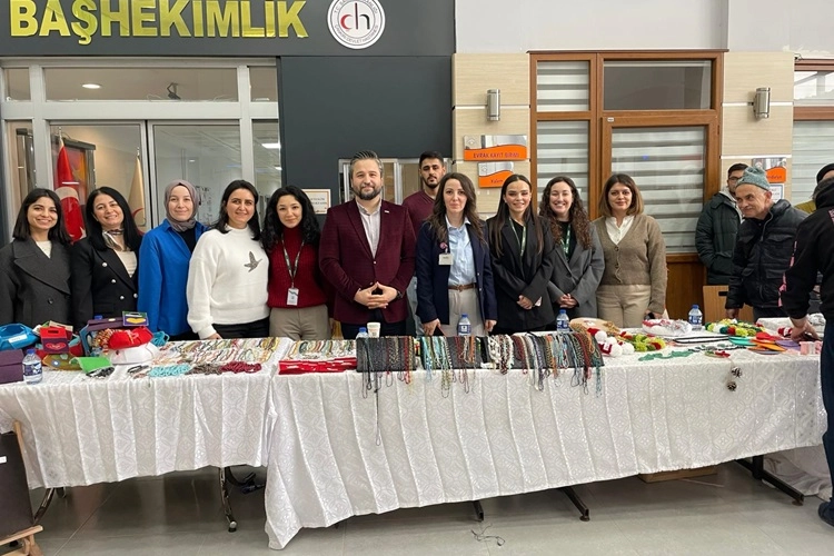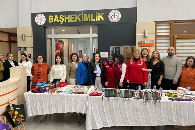 TRSM Sorumlu Hekimi Uzm.Dr. Betül Tufanoğlu, TRSM Birim Sorumlusu Uzm.Psikiyatri Hemşiresi Belda Çağlayan ve TRSM çalışanlarının öncülüğünde, tamamını Toplum Ruh Sağlığı Merkezi'nden hizmet alan danışanların iş uğraşı terapilerinde kendi el emekleriyle yaptığı hepsi birbirinden güzel ürünlerle, hastane çalışanları ile hastalara ve halkımıza yönelik düzenlenen kermese Çankırı Valisi Fırat Taşolar'ın eşi Didem Taşolar, Kızılay Çankırı Kadın Teşkilat Başkanı Malike Kurt ve çalışma arkadaşları ile Yeşilay Çankırı Şube Başkanı İsmail Özcan ve çalışma arkadaşları, Çankırı Devlet Hastanesi Başhekimi Op.Dr.Yüksel Sayın ve çalışma arkadaşları katıldı. Kermeste satılan ürünler, Çankırı Devlet Hastanesi çalışanları ile katılan vatandaşlar tarafından adeta kapışıldı. TRSM danışanlarının el emeği göz nuru ile hazırladıkları ürünlerin kısa sürede satıldığı kermeste, danışanların mutluluğu gözlerinden okunuyordu.