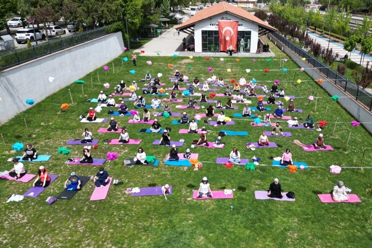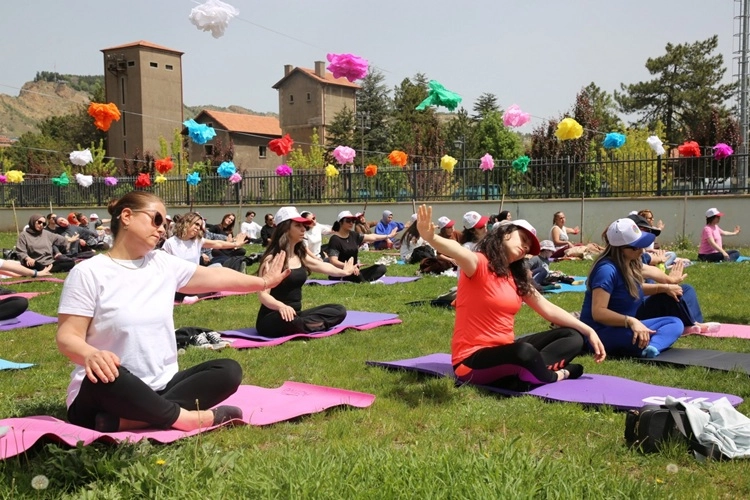 Fizyoterapist Veciha Altın ve Çankırı Fizyoterapi Ekibi'nin katkılarıyla ücretsiz olarak gerçekleştirilen etkinlikte, çimlerin üzerine serilen matlar, minderler ve renkli tüller görsel bir şölen oluşturdu. Katılımcılar, bir saat süren omurga egzersizleriyle hem spor yaptı hem de açık havanın tadını çıkardı.