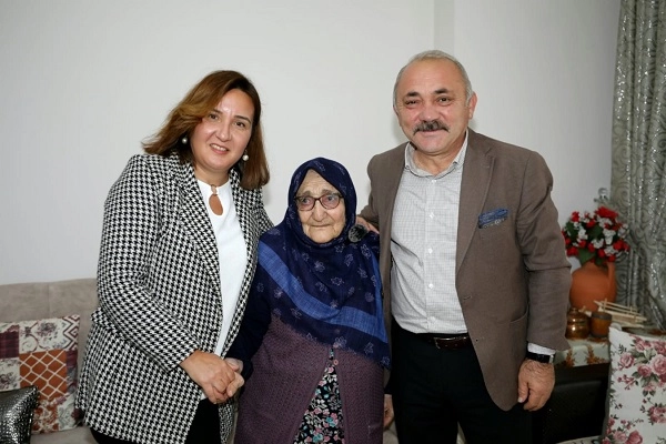 1923 doğumlu Ayşe Nine, anlattığı hatıralar ile kendini dinleyen herkesi eski dönemlere götürdü. Vali Taşolar, ziyaret sonunda Ayşe Nine’ye evlilik kaydının örneğini ve Türk bayrağı hediye etti.